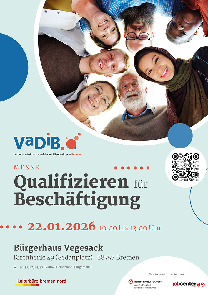 Am Donnerstag, den 22.01.2026 findet die Messe “Qualifizieren für Beschäftigung” im Gustav-Heinemann-Bürgerhaus in Vegesack statt. #YourTurninBremen ist auch dabei!